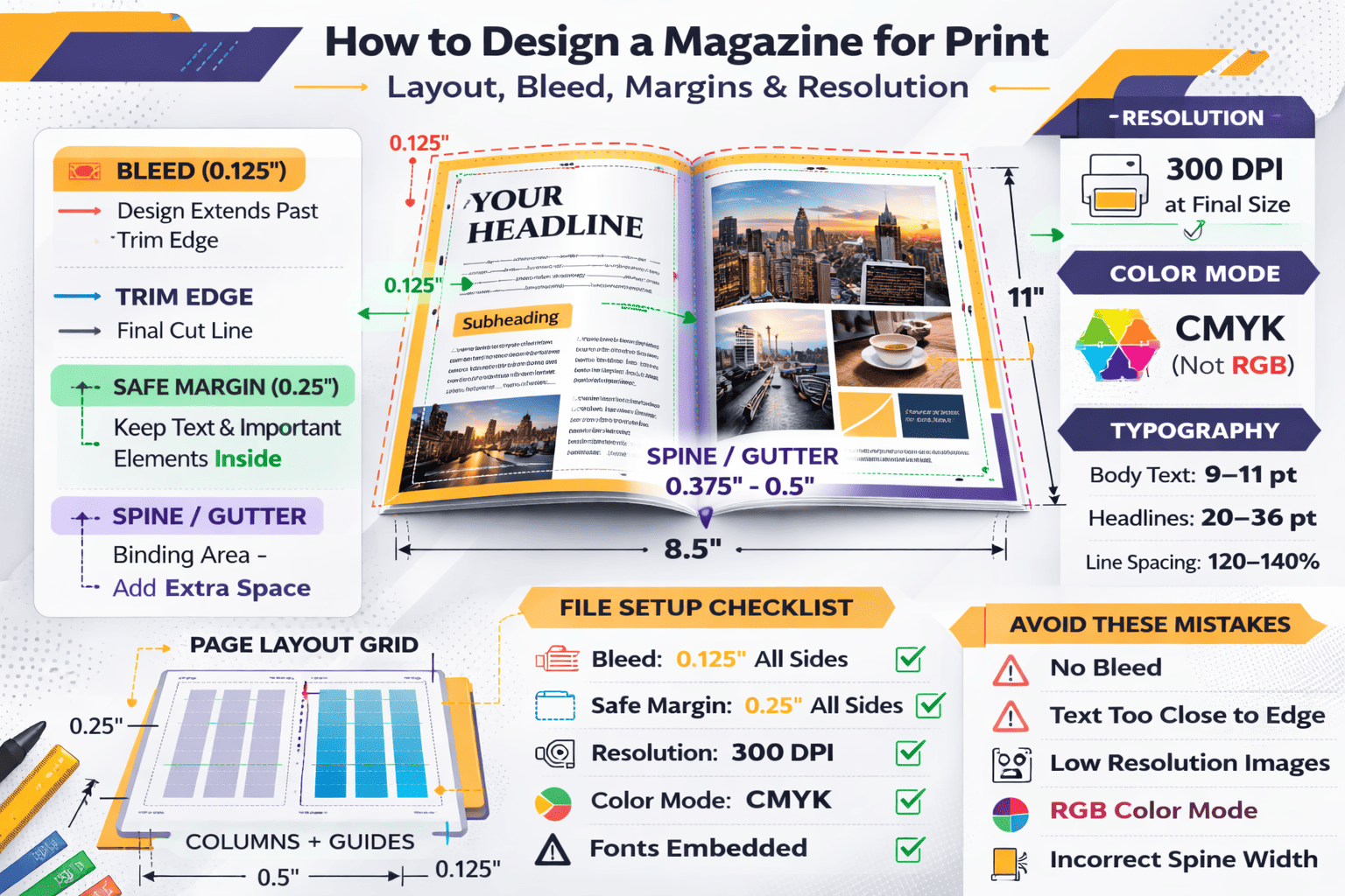 How to Design a Magazine for Print: Layout, Bleed, Margins & Resolution